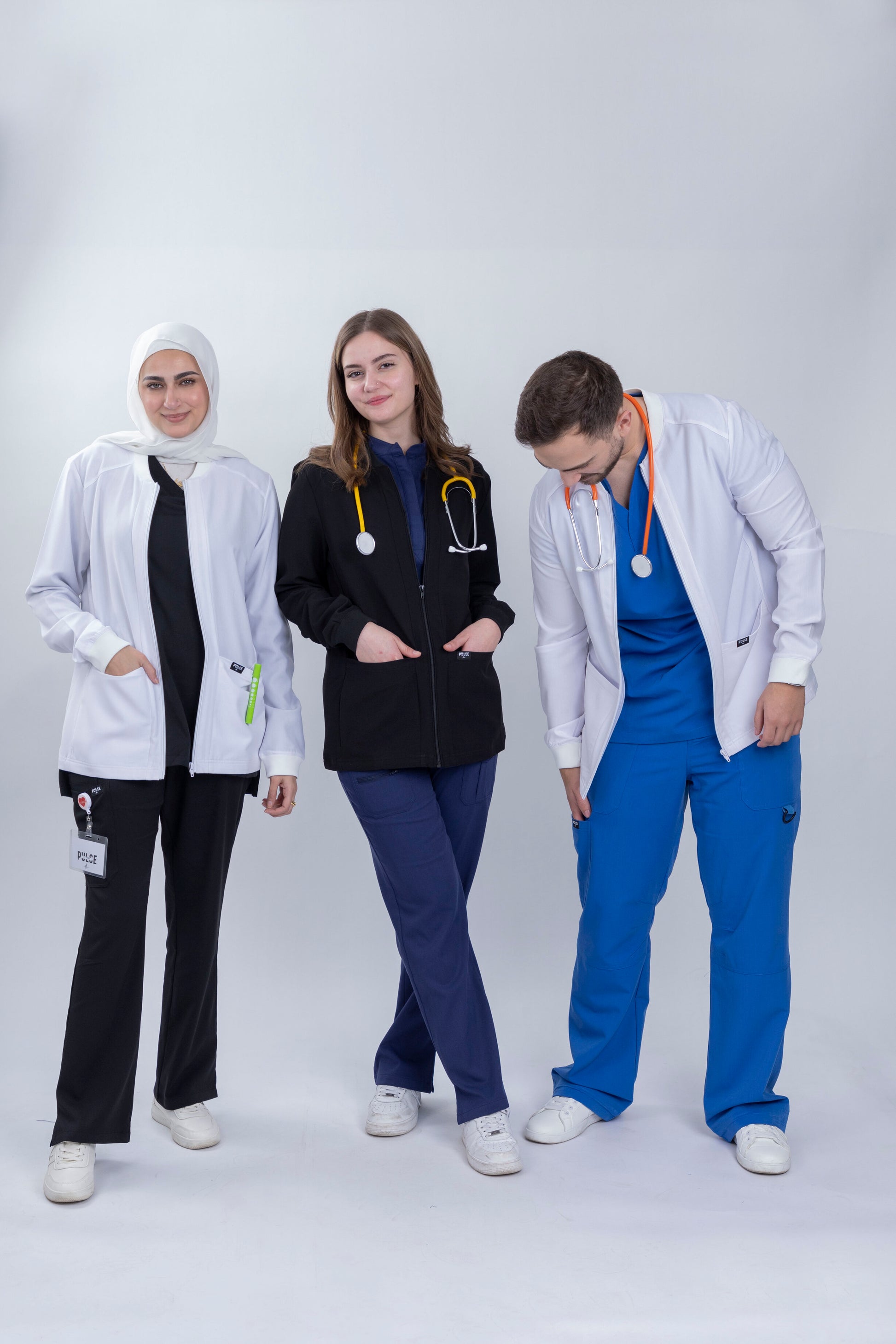 Step into sophistication with the Midnight jacket from the Everline Series, designed for both men and women. This sleek black jacket combines a timeless look with superior functionality. Featuring spacious pockets, it provides ample storage space for your essentials, ensuring convenience and efficiency during your busy day. Made from a lightweight yet robust fabric, the Midnight jacket delivers exceptional comfort, durability, and ease of movement. Its minimalist and modern design complements a variety of professional settings, from healthcare environments to academic workplaces. With its breathable material and tailored fit, this jacket ensures you remain confident and composed in every task, blending durability and style seamlessly.