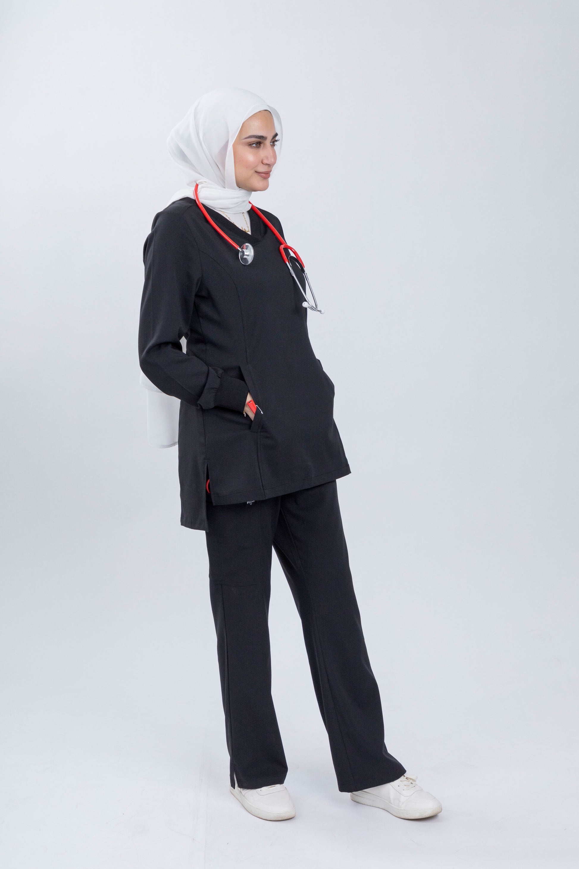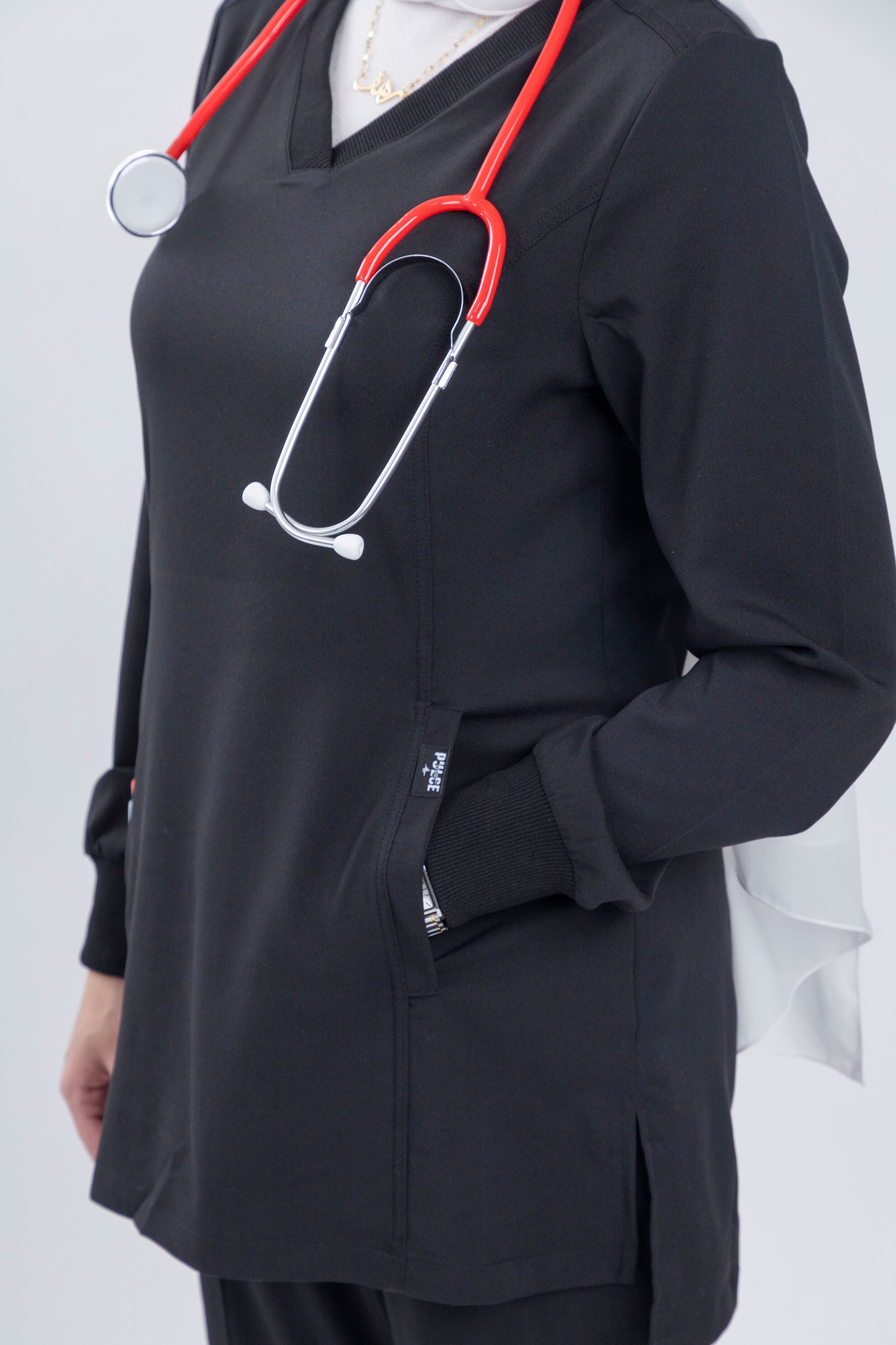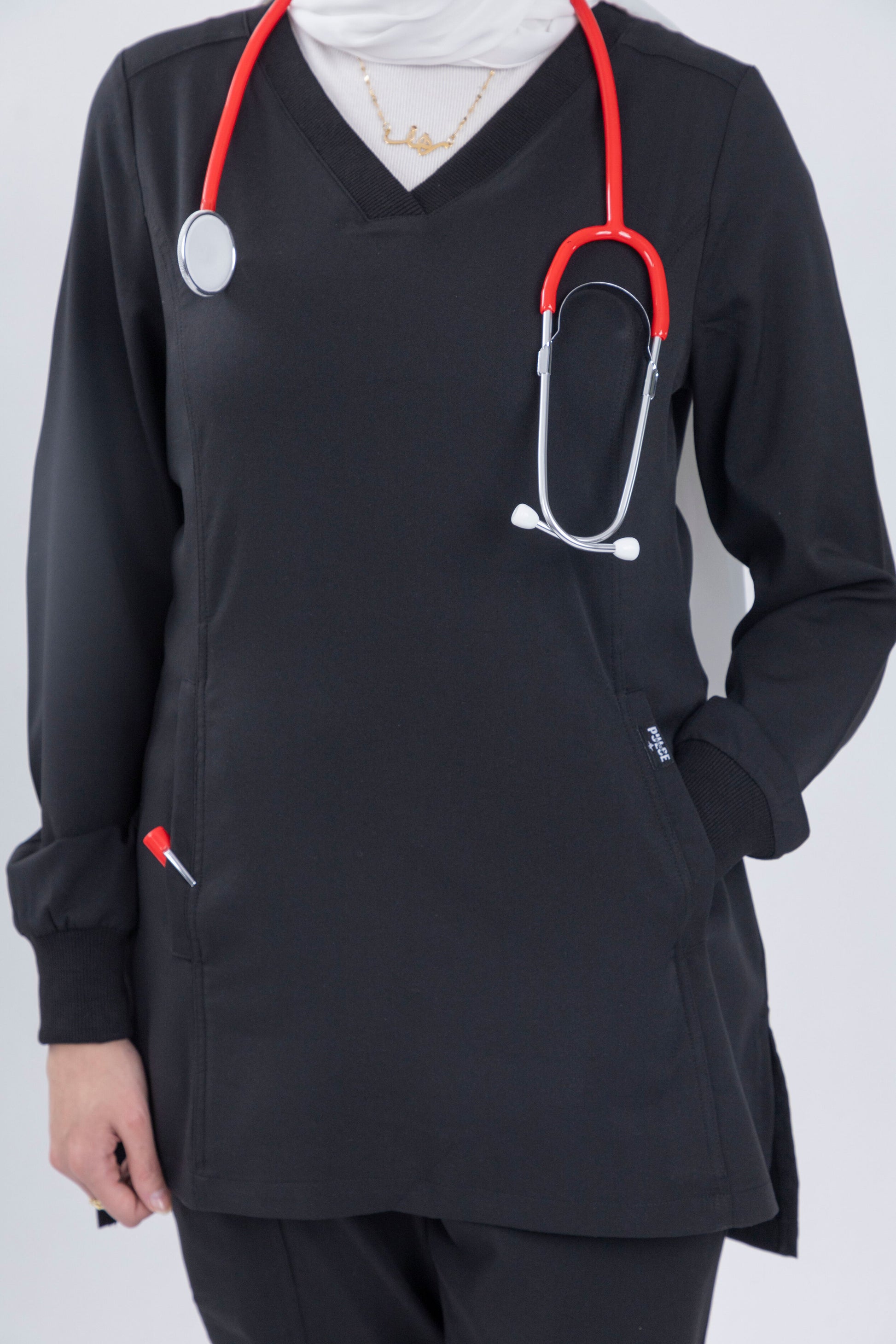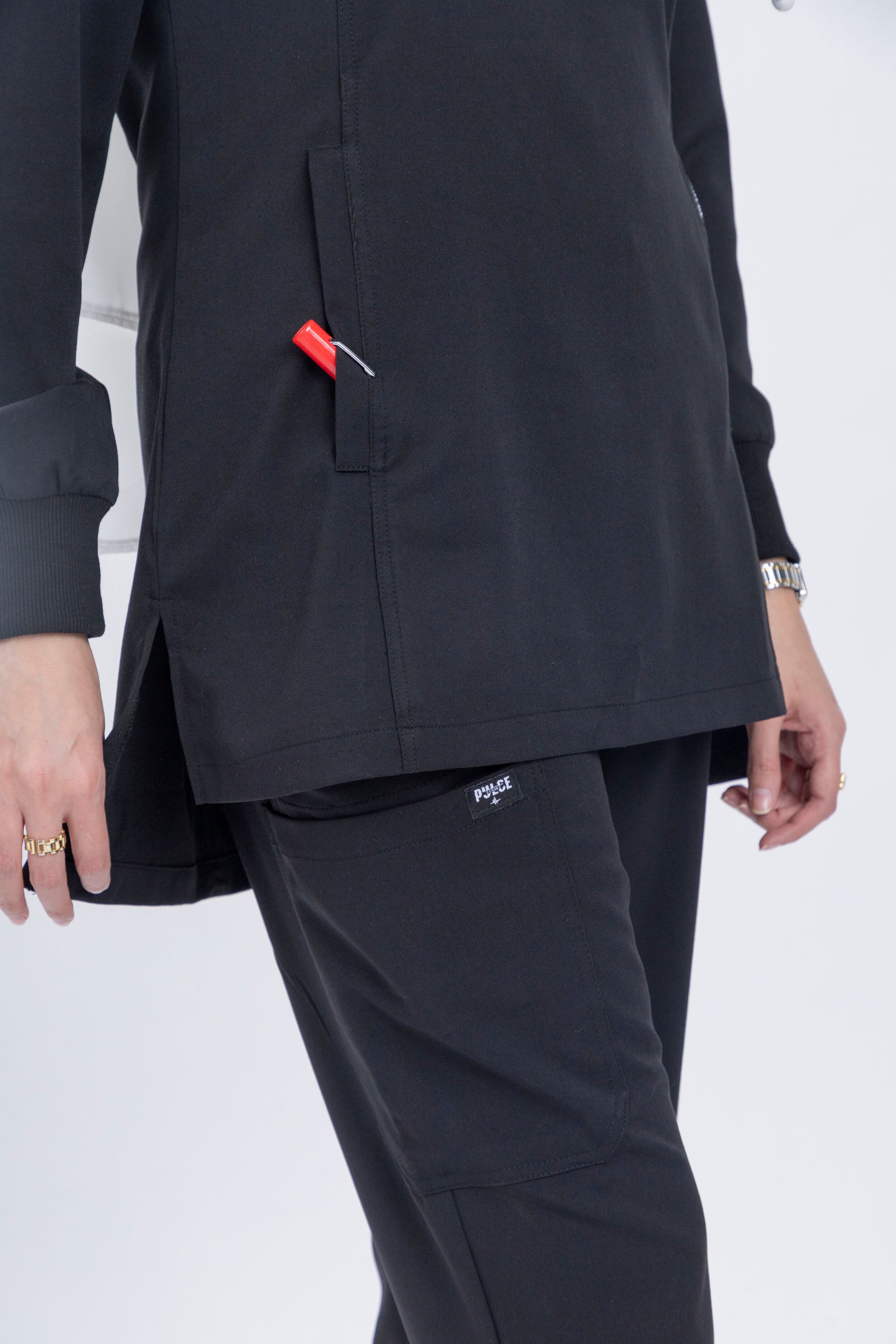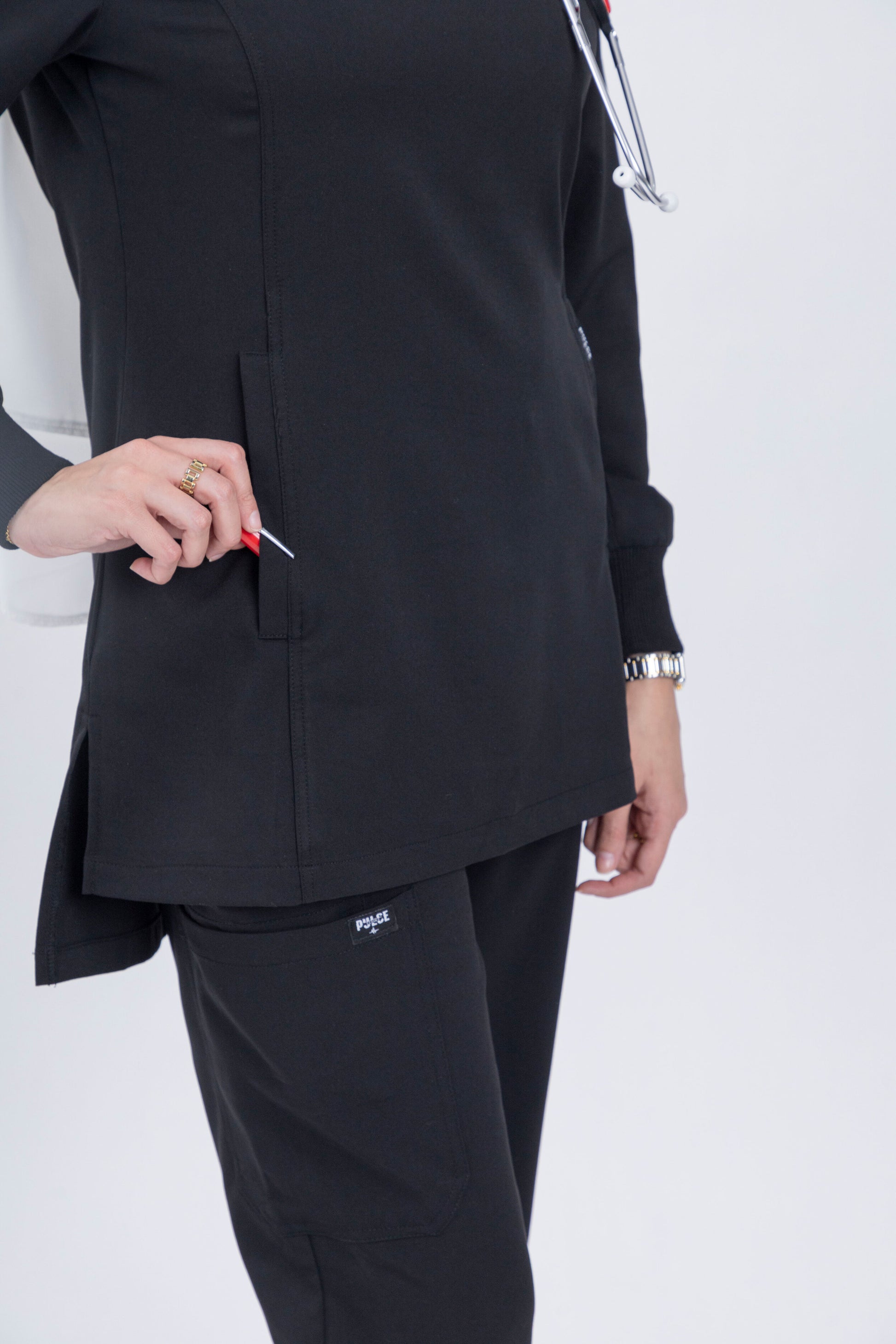 Elevate your professional wardrobe with the timeless elegance of Midnight Black scrubs from the Harmony Series. This classic black hue exudes confidence and sophistication, making it an essential choice for professionals who prioritize both style and functionality. Crafted from soft, stretchy fabric, these scrubs ensure all-day comfort and effortless movement, allowing you to navigate your demanding workday with grace and ease. With Midnight Black scrubs, experience the perfect blend of practicality and luxury.