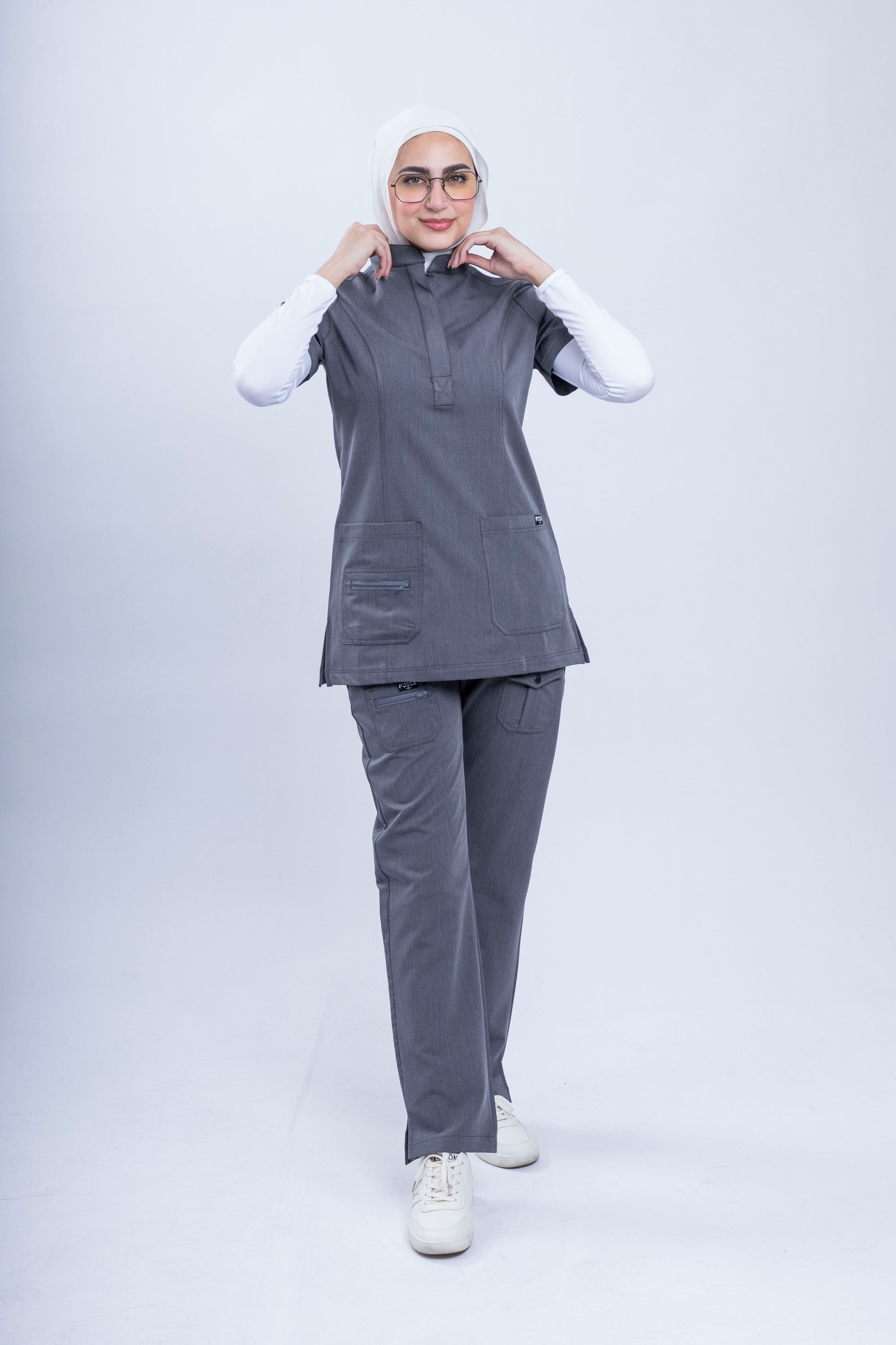 Power meets versatility in the Steel Grey scrubs from the Ram & Rom Series. This deep, commanding shade reflects strength, resilience, and a refined sense of professionalism. The Ram scrubs, featuring a contemporary short-sleeve design, allow for effortless mobility and a breathable fit, making them ideal for fast-paced environments. The Rom scrubs, with long sleeves, offer an added layer of confidence and sophistication, perfect for professionals who seek both style and practicality. Designed with advanced stretch fabric that moves as you do, these scrubs provide all-day comfort without compromising on durability. Whether in the ER, clinic, or lab, Steel Grey scrubs redefine modern professional wear with an edge of timeless sophistication.