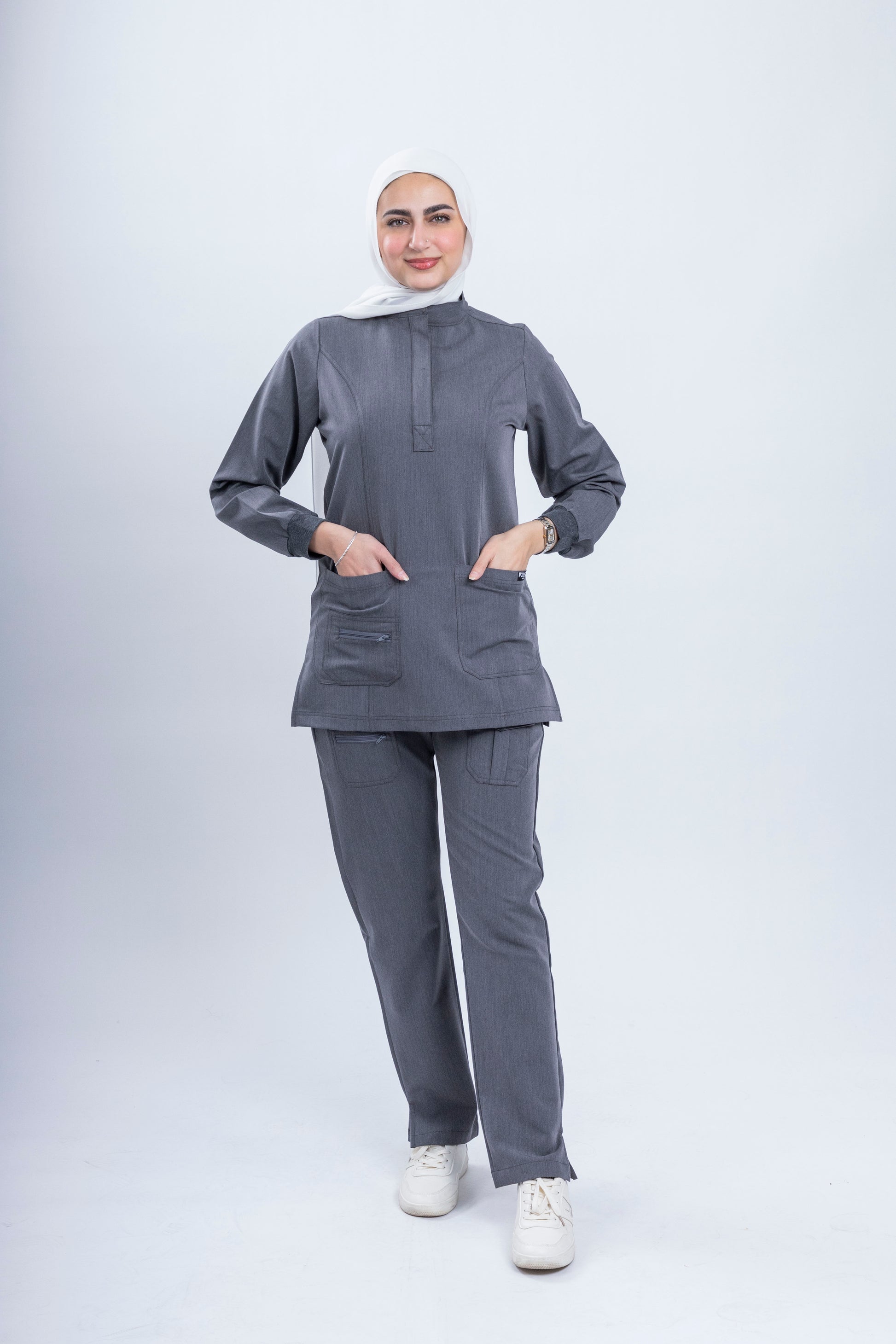 Power meets versatility in the Steel Grey scrubs from the Ram & Rom Series. This deep, commanding shade reflects strength, resilience, and a refined sense of professionalism. The Ram scrubs, featuring a contemporary short-sleeve design, allow for effortless mobility and a breathable fit, making them ideal for fast-paced environments. The Rom scrubs, with long sleeves, offer an added layer of confidence and sophistication, perfect for professionals who seek both style and practicality. Designed with advanced stretch fabric that moves as you do, these scrubs provide all-day comfort without compromising on durability. Whether in the ER, clinic, or lab, Steel Grey scrubs redefine modern professional wear with an edge of timeless sophistication.