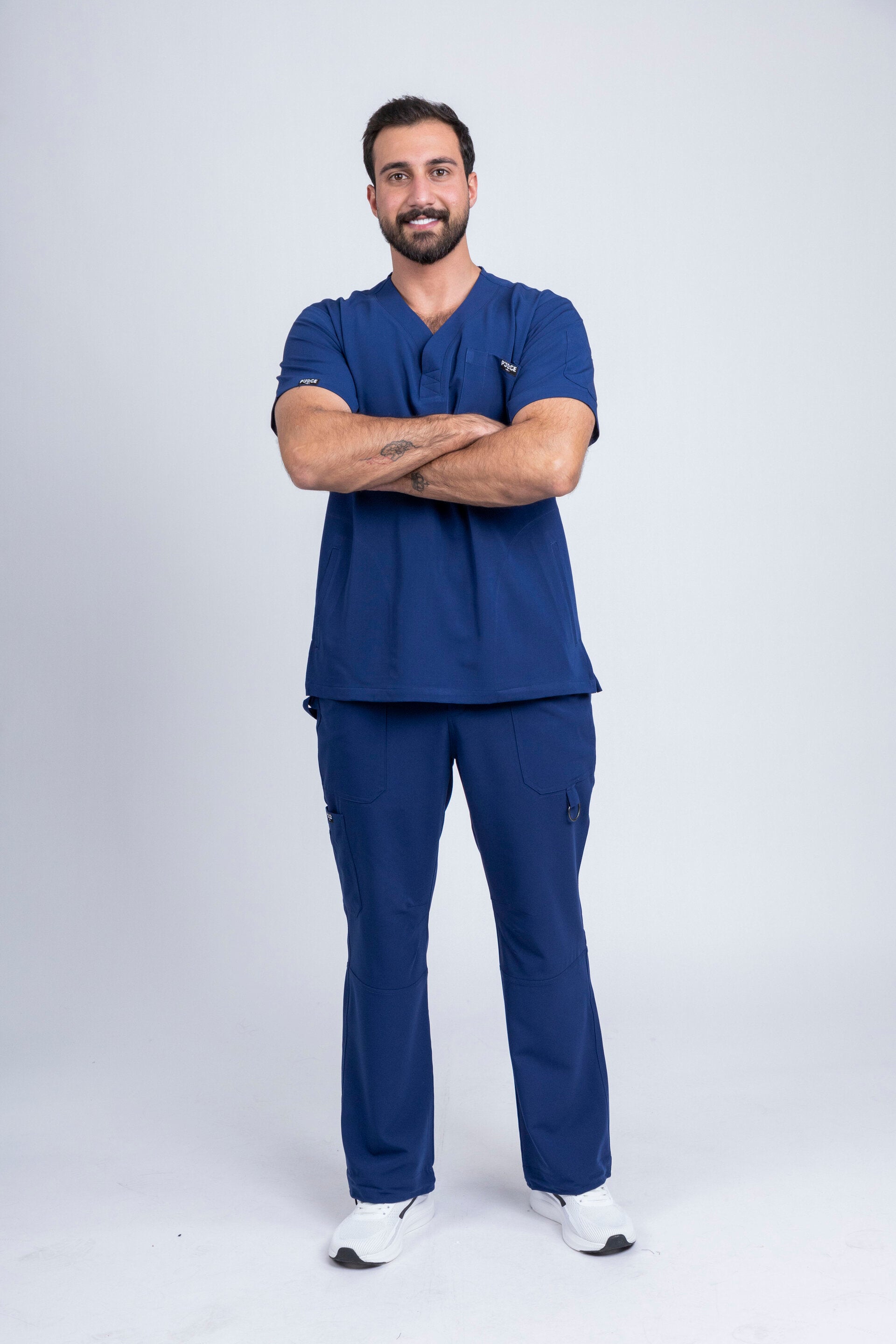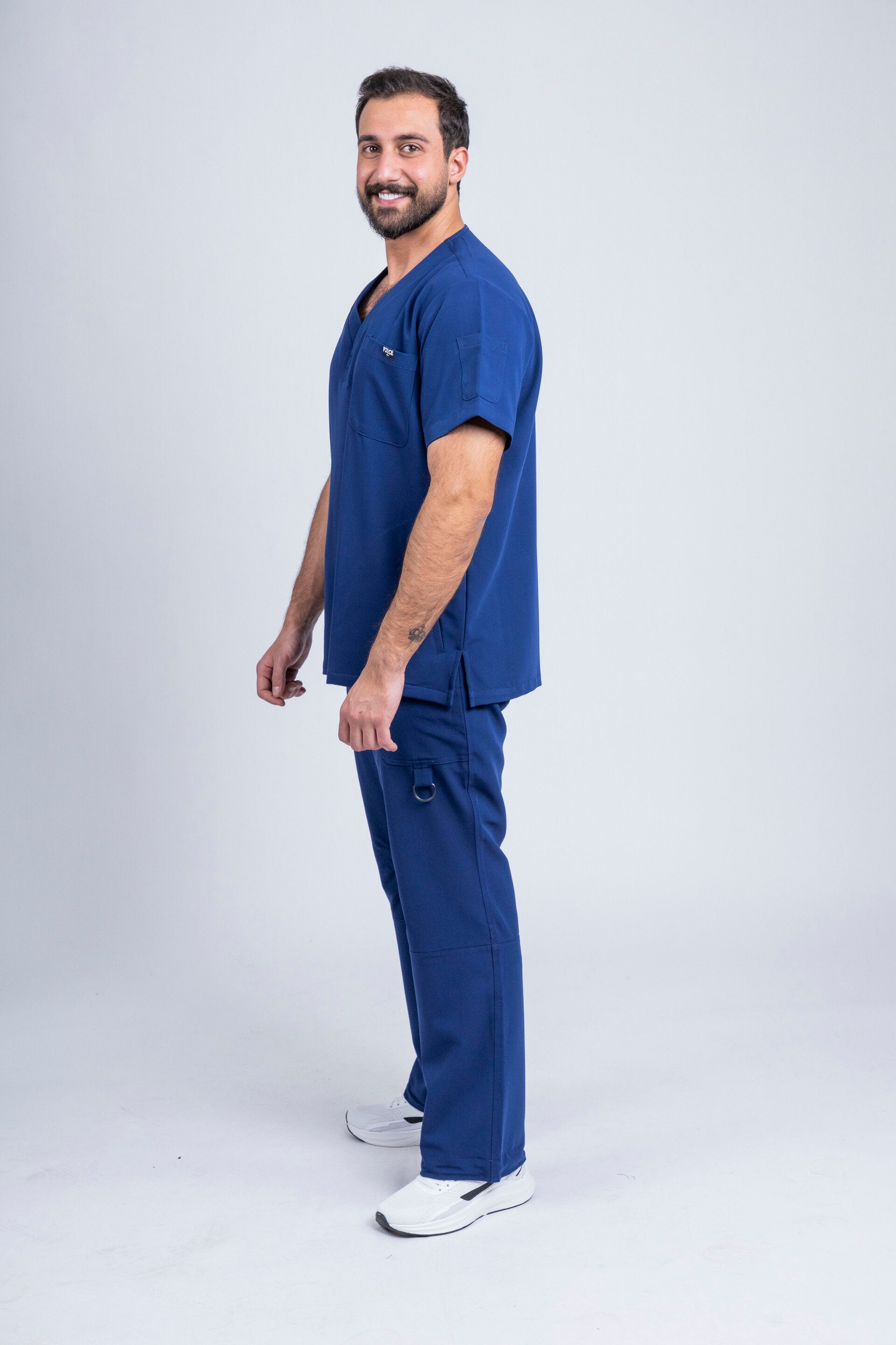 Classic, timeless, and endlessly professional, the Deep Sea Blue scrubs from the Zayn Series embody the essence of confidence and reliability. This deep blue shade is a staple for healthcare professionals who appreciate a refined yet functional approach to workwear. Designed for maximum efficiency, these scrubs feature multiple strategically placed pockets, including spacious front pockets, functional side cargo pockets, and a secure back pocket, offering plenty of space for your daily necessities. With a dedicated stethoscope loop for added practicality, these scrubs ensure your tools are always within reach. Crafted from a soft, stretchable fabric, they deliver exceptional comfort and freedom of movement, allowing you to navigate even the busiest shifts with ease. Deep Sea Blue isn’t just a color—it’s a representation of tradition, trust, and unwavering commitment to excellence.